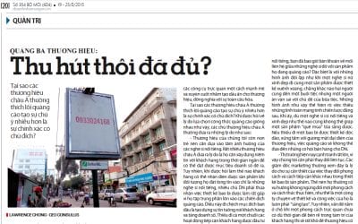 Mới đây, ông Lawrence Chong, Đồng sáng lập viên và CEO Consulus đã đưa ra những nhận định xoay quanh câu hỏi tại sao các thương hiệu châu Á thường thích lối quảng cáo tạo sự chú ý nhiều hơn là sự chính xác có chủ đích trên Báo Doanh Nhân Sài Gòn số 354 ra ngày 19/08/2015 với tựa đề “Quảng bá thương hiệu: thu hút thôi đã đủ?”